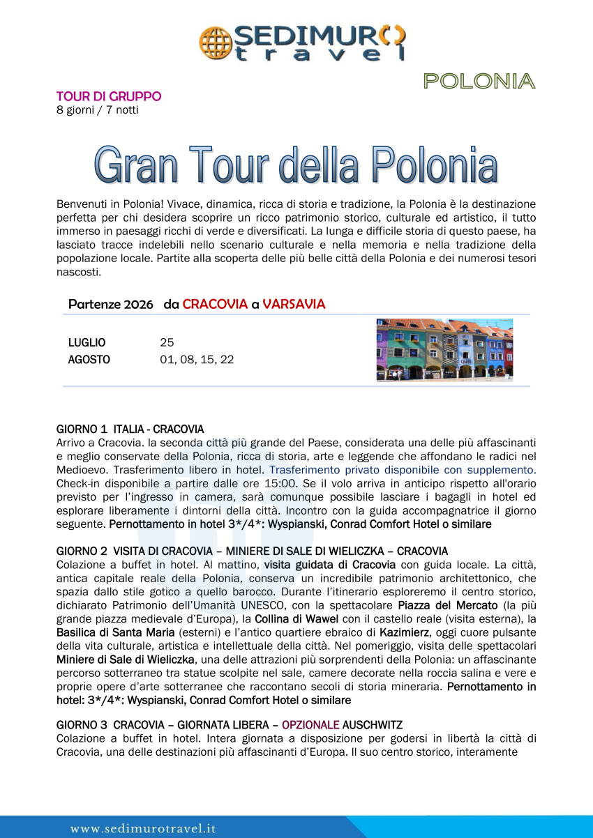 Gran Tour della Polonia da Cracovia a Varsavia 8 giorni